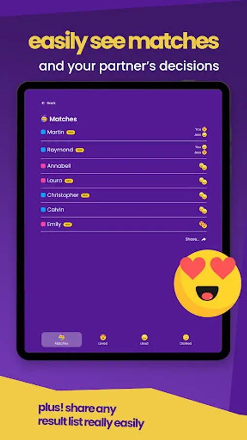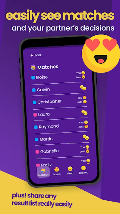 - DISLIKE, LIKE AND LOVE: More than just disliking or liking, you can now LOVE a name! We'll instantly let your partner know you love that name.