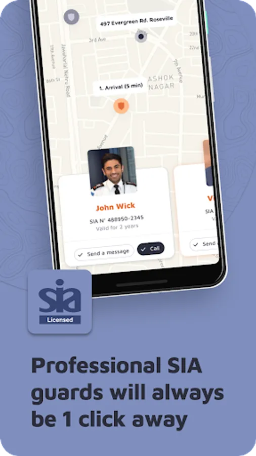 Designed in the format of a panic button, it is A Security App linked to the nearest SIA licensed operatives available in your area.