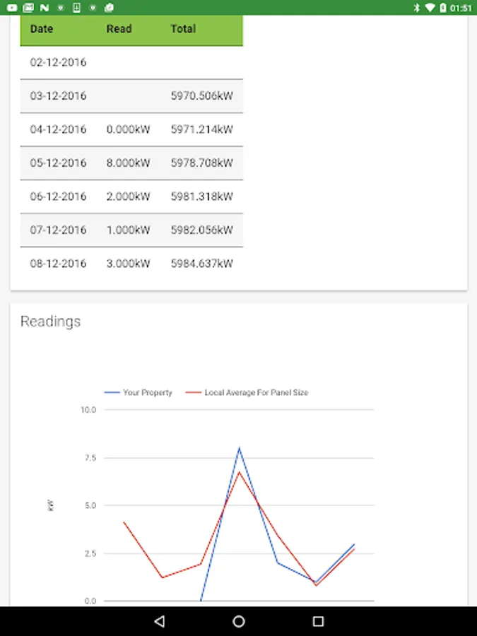 The customer can also view the total amount of power collated over a period of time and see how their System compares to other systems locally.