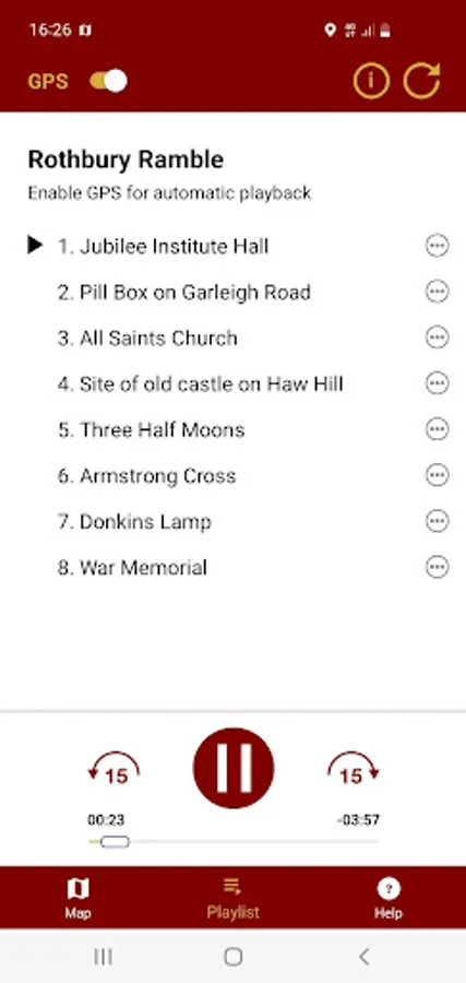 The sites each have audio files recorded by locals (first and middle schools, local historic society, locals, military veterans and even a young refugee from the war in Ukraine) and photographs, all triggered by GPS when you approach each site.