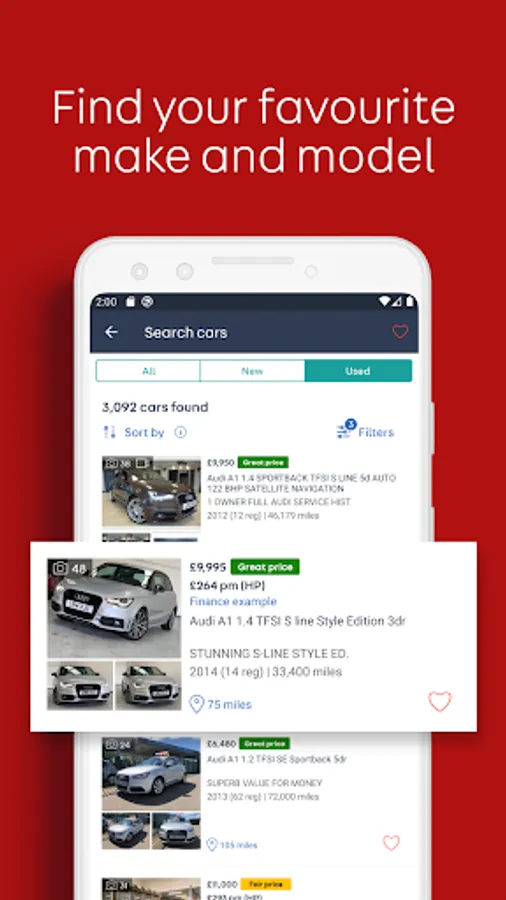 • Use advanced filters to search new and used cars, including make, model, price, mileage and more to find your perfect vehicle