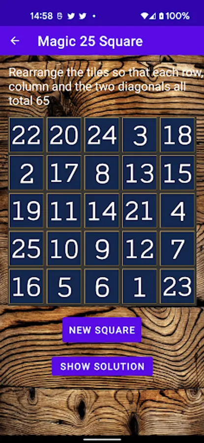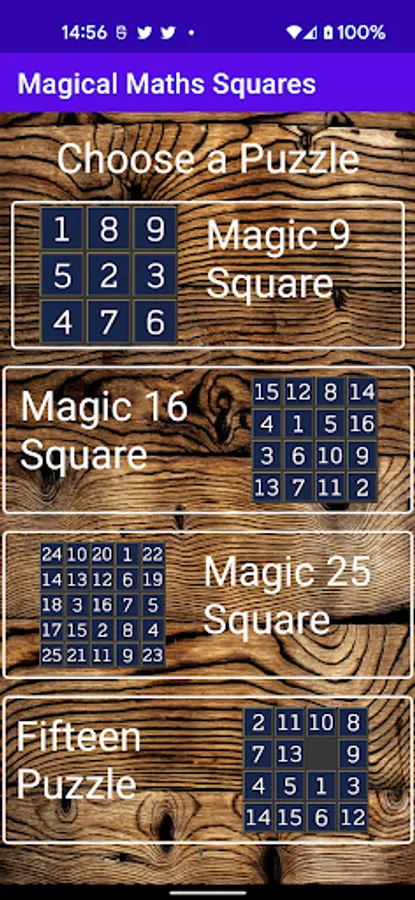 They make fun mathematical puzzles and this App includes 3x3, 4x4 and 5x5 squares - these are progressively more difficult to solve!!! All three magic squares allow you to see a solution if you get stuck and you can generate a new puzzle whenever you wish if you would like a new challenge.