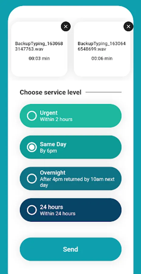 Log in with the user registered in BackupTyping and send us dictations. Manage the audios you send us.