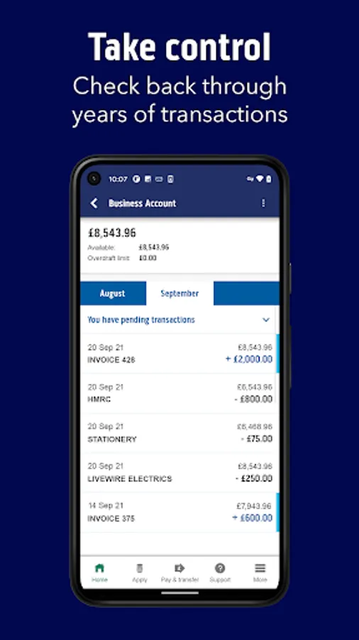 Stay in control of your business accounts on the move. Our app is fast, convenient and safe – keeping your bank details secure at all times.