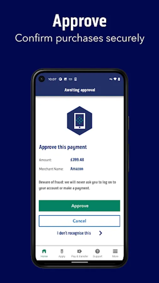 We use the latest online security to protect your money, your information and your privacy. Our app checks your details, your device and its software for security before you log in. If your phone is lost or stolen, we can block it from being used to try and access your accounts.
