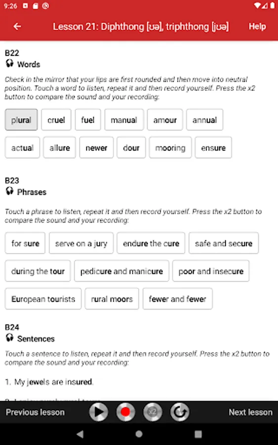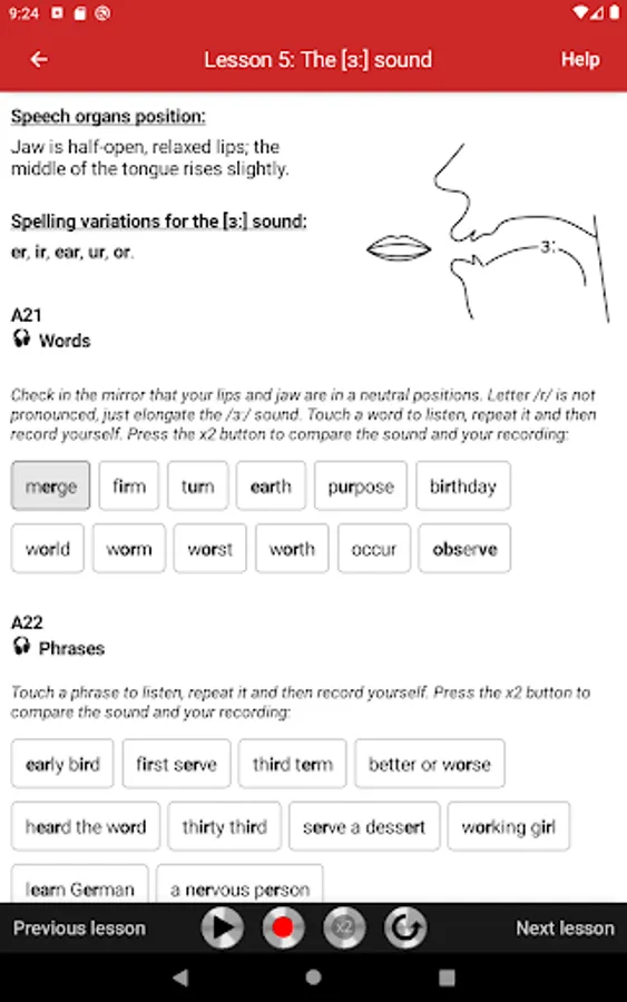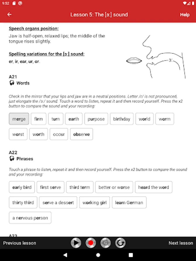 You practice English pronunciation first in words, then in useful phrases, short sentences, amusing verses, rhythmic and articulation exercises and short passages. We selected the most essential vocabulary for those who begin to learn English.