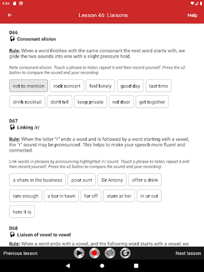 • Students can repeat, copy pronunciation, liaisons, and intonation;
