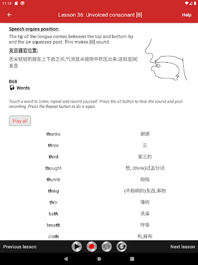 Get Rid of Chinese Accent App is the British English Pronunciation Course at your fingertips, ideal for self-study. It contains 42 audio lessons from the international bestseller Get Rid of your Accent, Part One, by Linda James and Olga Smith (learn more on Developer's Website). All instructions and many exercises are accompanied by Chinese translations.