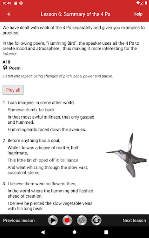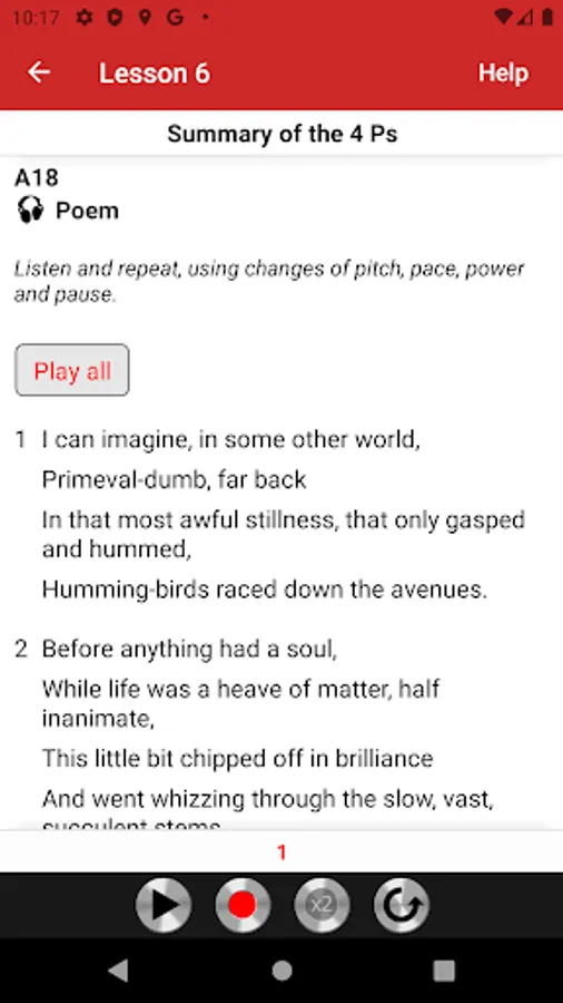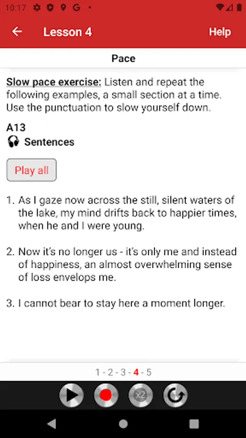 App functionality: you listen, record, play your recording back and compare it with model voice.
