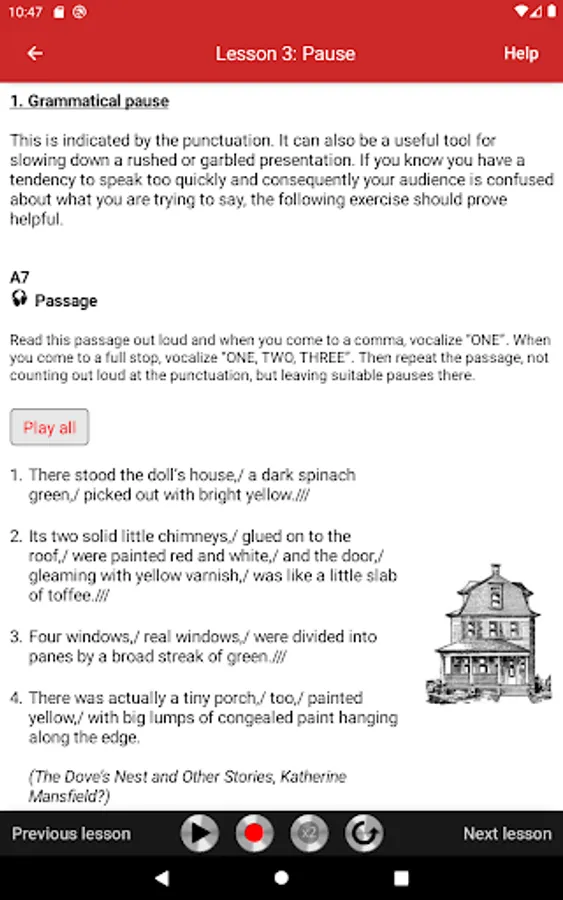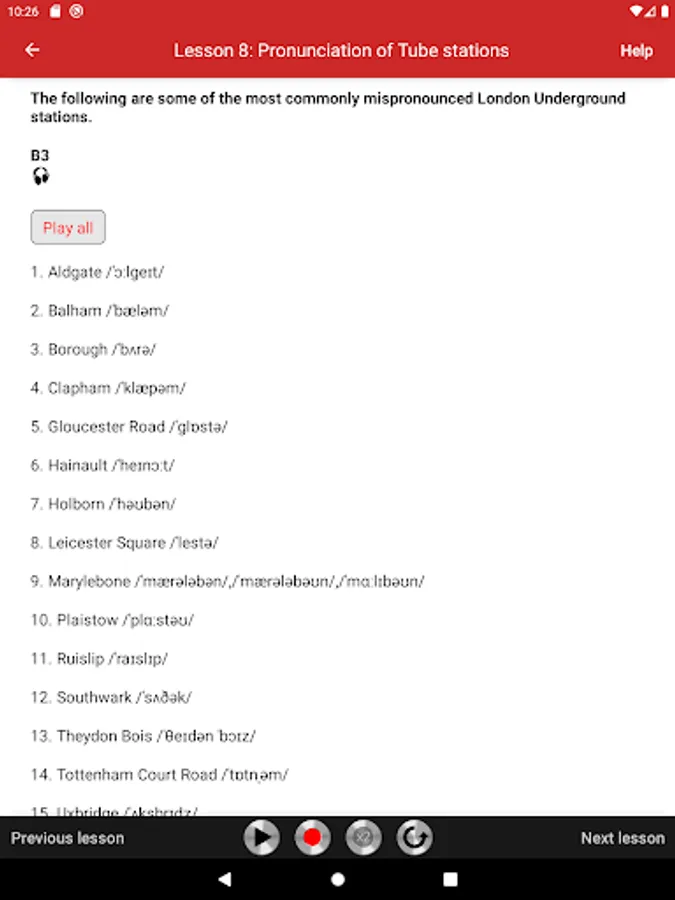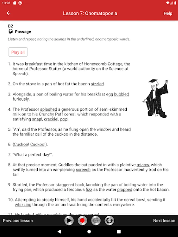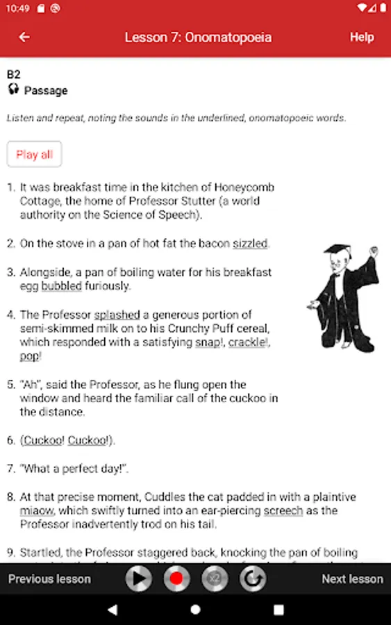 In the second part (Lessons 7-17), you practice muscular and rhythmic exercises, English sounds in comparison charts, onomatopoeia and place names. These are classic elocution lessons, which help to make your speech clear and crisp.