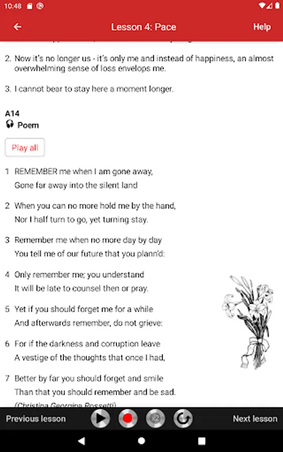 Extracts from famous English poems and prose were selected for students to practice.