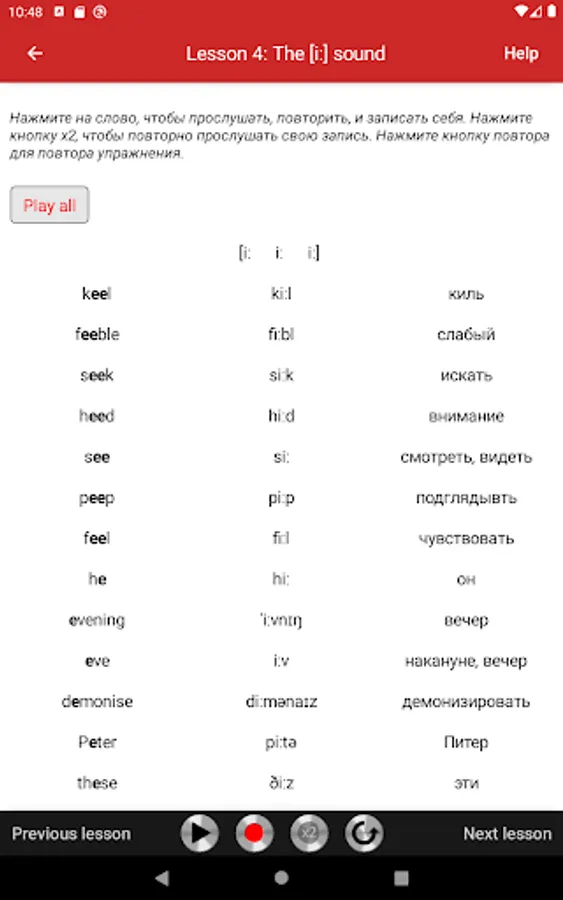 Get Rid of Russian Accent App is the British English Pronunciation Course at your fingertips, ideal for self-study. It contains 42 audio lessons from the international bestseller Get Rid of your Accent, Part One, by Linda James and Olga Smith (learn more on Developer's Website). All lessons and many exercises are accompanied by Russian translations. Lessons are accompanied by an extensive appendix in Russian.