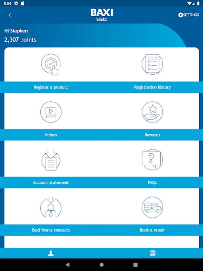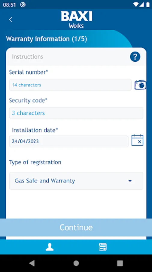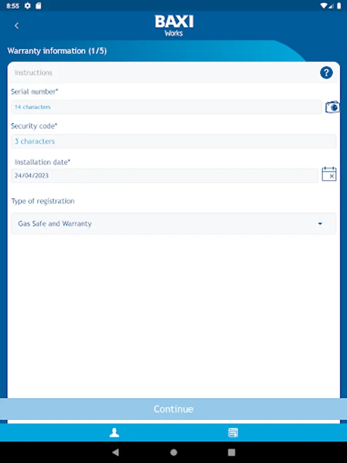 - The Baxi Works loyalty scheme – Scan the boiler barcode and register the warranty and Gas Safe notification quickly and easily when you’re on the go. View your Product registration history and Account statement, access the Works forum, FAQs and Key contacts