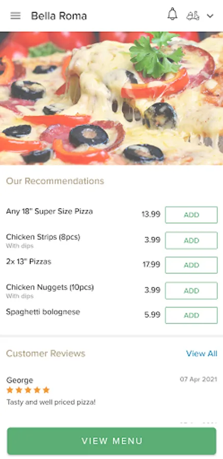 Order food online in Eastcote! It's so easy to use, fast and convenient. Try our new, online app which contains our entire takeaway menu. The Bella Roma is located in Eastcote. You can now order online, all your favourite dishes and many more delicious options, and have them delivered straight to your door in no time at all. Here at Bella Roma we are constantly striving to improve our service and quality in order to give our customers the very best experience. As a result, we are finally proud to unveil and introduce our latest improvement, our new online ordering app! You can now relax at home and order your favourite, freshly prepared meals from Bella Roma, online. You can even pay online!