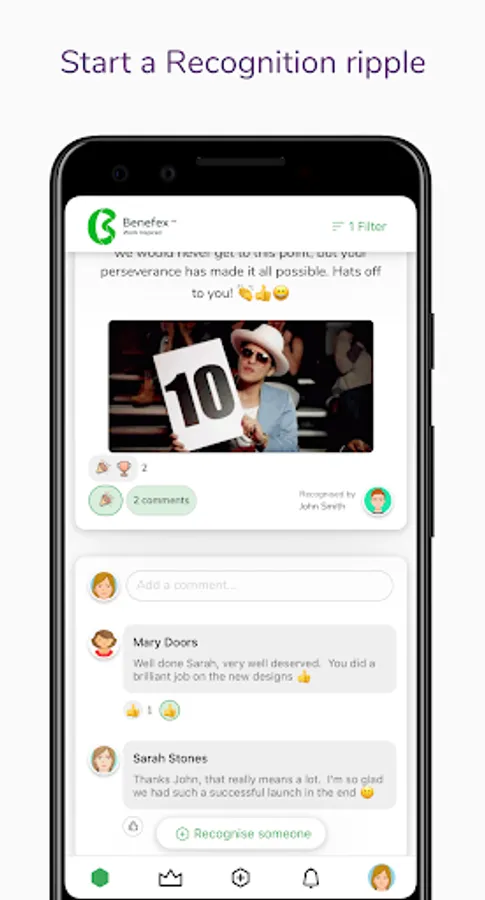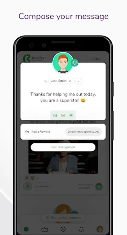 Say a big ‘thank you’ to your colleagues in an instant, with our intuitive social recognition app. Express your appreciation with text, memes, videos and GIFs.