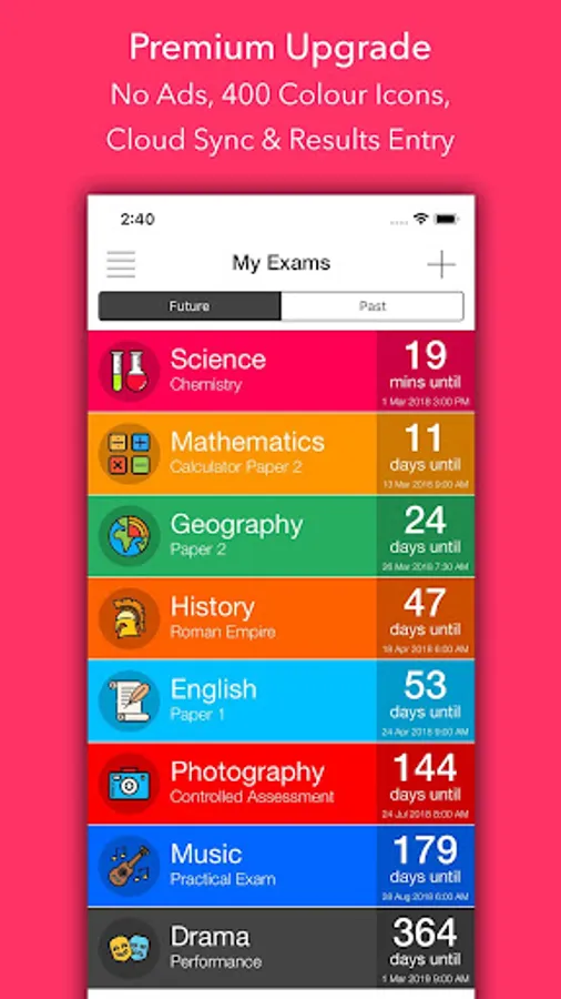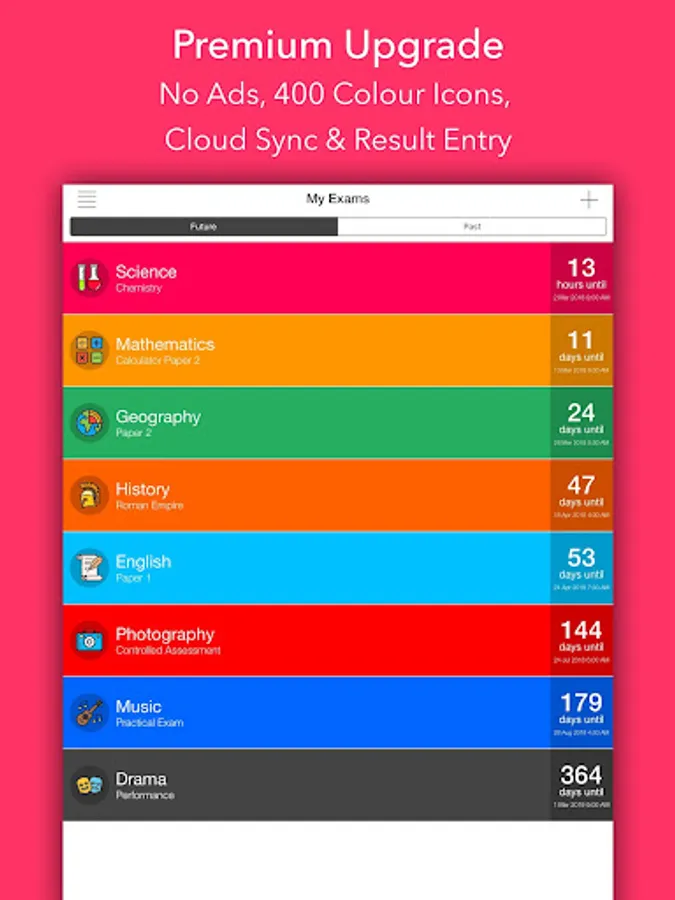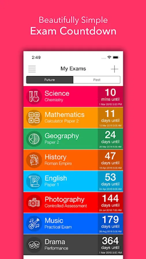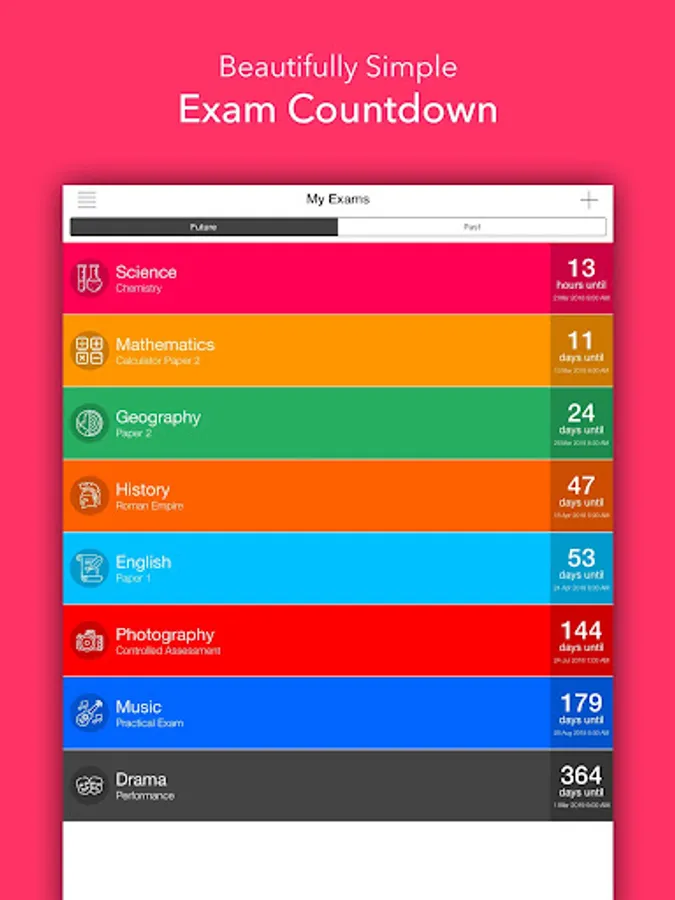 Exam Countdown is a free and simple app to keep track of exam and test dates.