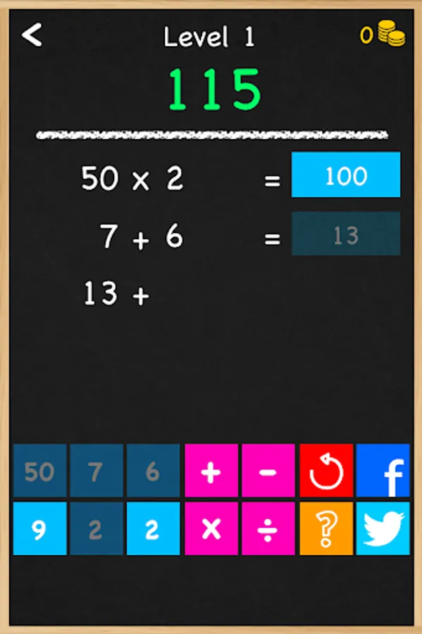 The aim of Numbers Game! is to reach the target number using any of the 6 numbers and operators + - x ÷.