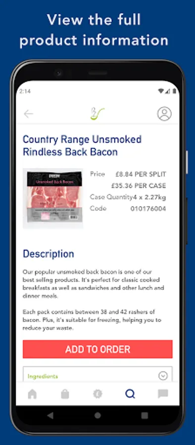 Once registered, you will have the full Birchall Foodservice product portfolio in the palm of your hand with images, allergens, ingredients and nutritional information. What’s more, you will be able to chat with your telesales partner, build menus for your establishment, and of course, place your orders.