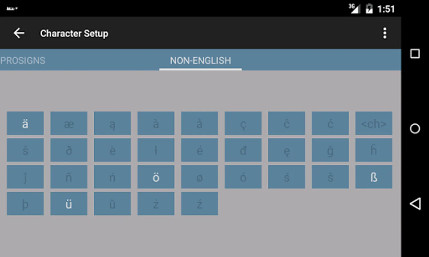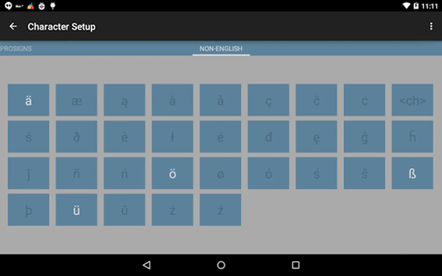 Take your morse code to the next level with Koch Morse Trainer Pro. The only trainer that supports prosigns (procedural signals) and non-english extensions characters on Android.
