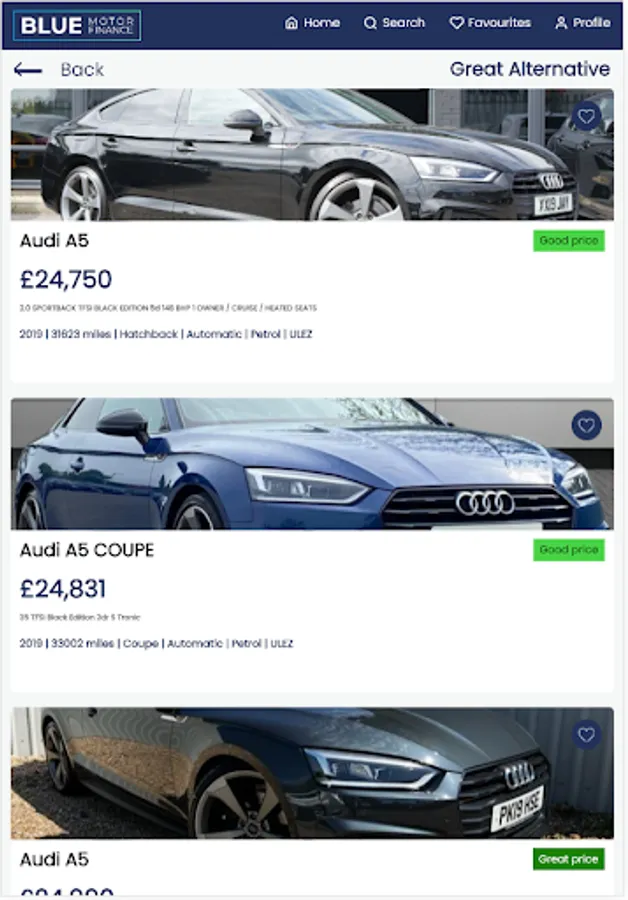 • For your favourited vehicles, our ‘best value’ search algorithm will help you validate your choice and suggest alternatives