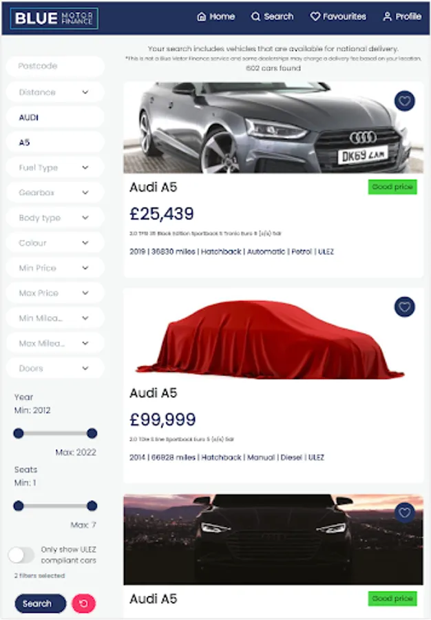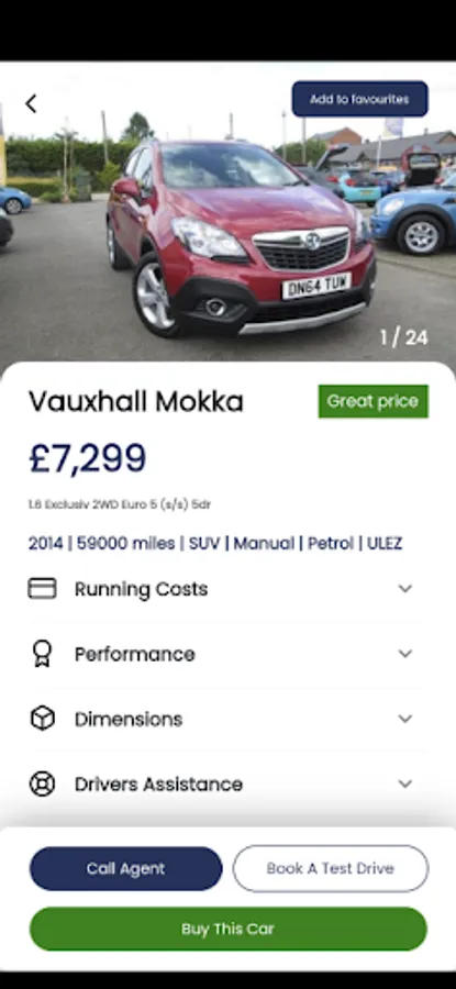 2) Click the 'add to favourites' button to add cars to your favourite area. You can save as many as you like.
