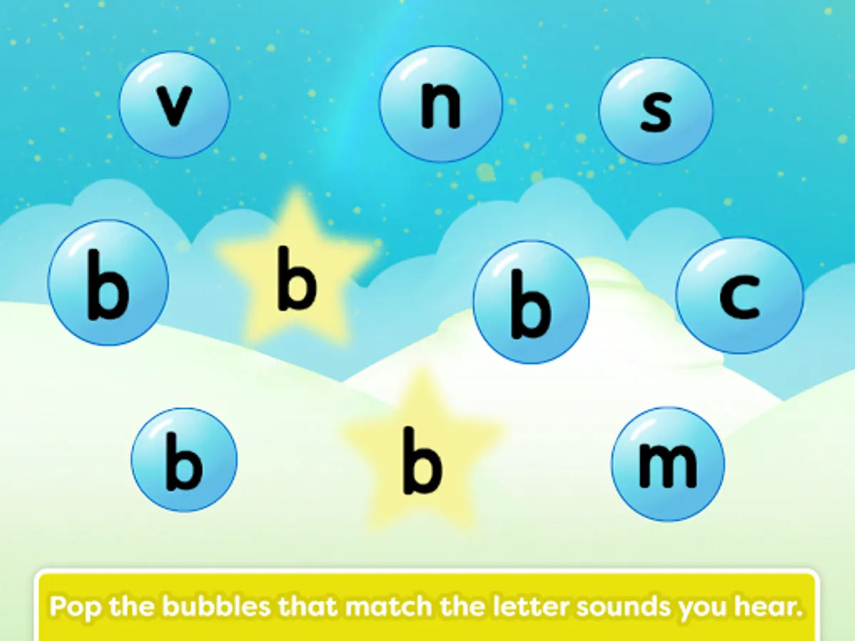 ◆ Bubble pop! — match letters to sounds by popping the bubbles that match the sounds you hear.