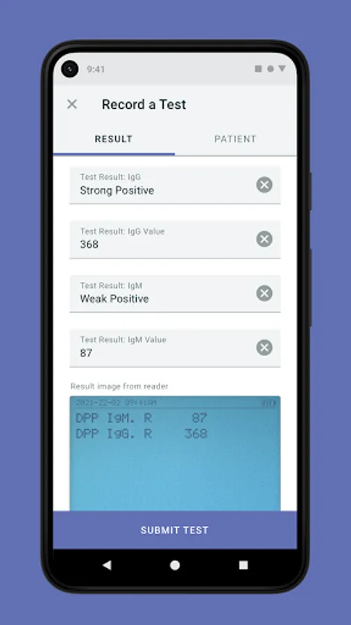 Capture and store the results of Luas Diagnostics antibody tests. Producing an electronic receipt for each test record.