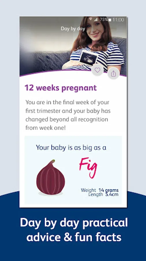 Watch your baby grow with our womb-with-a-view, baby foot size tracker and baby growth tracker. Daily hints and tips timed to your baby’s stage of development and milestones, before and after birth.