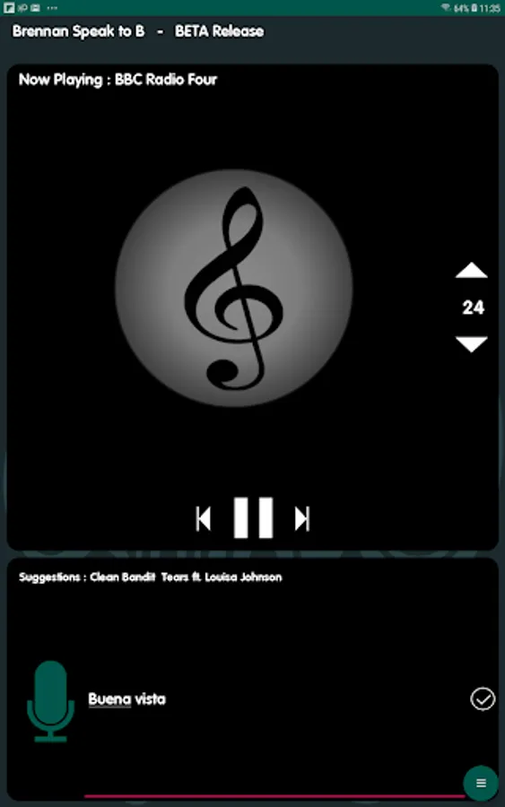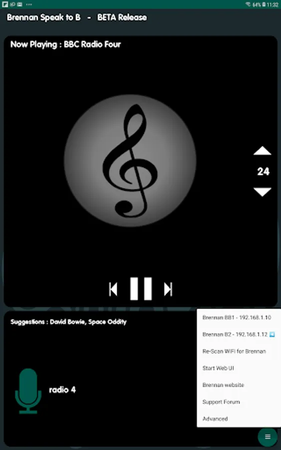 This app is intended as fun way to control your Brennan audio player. For the full set of controls for your Brennan you should use the Brennan App which provides access to the full Web UI.