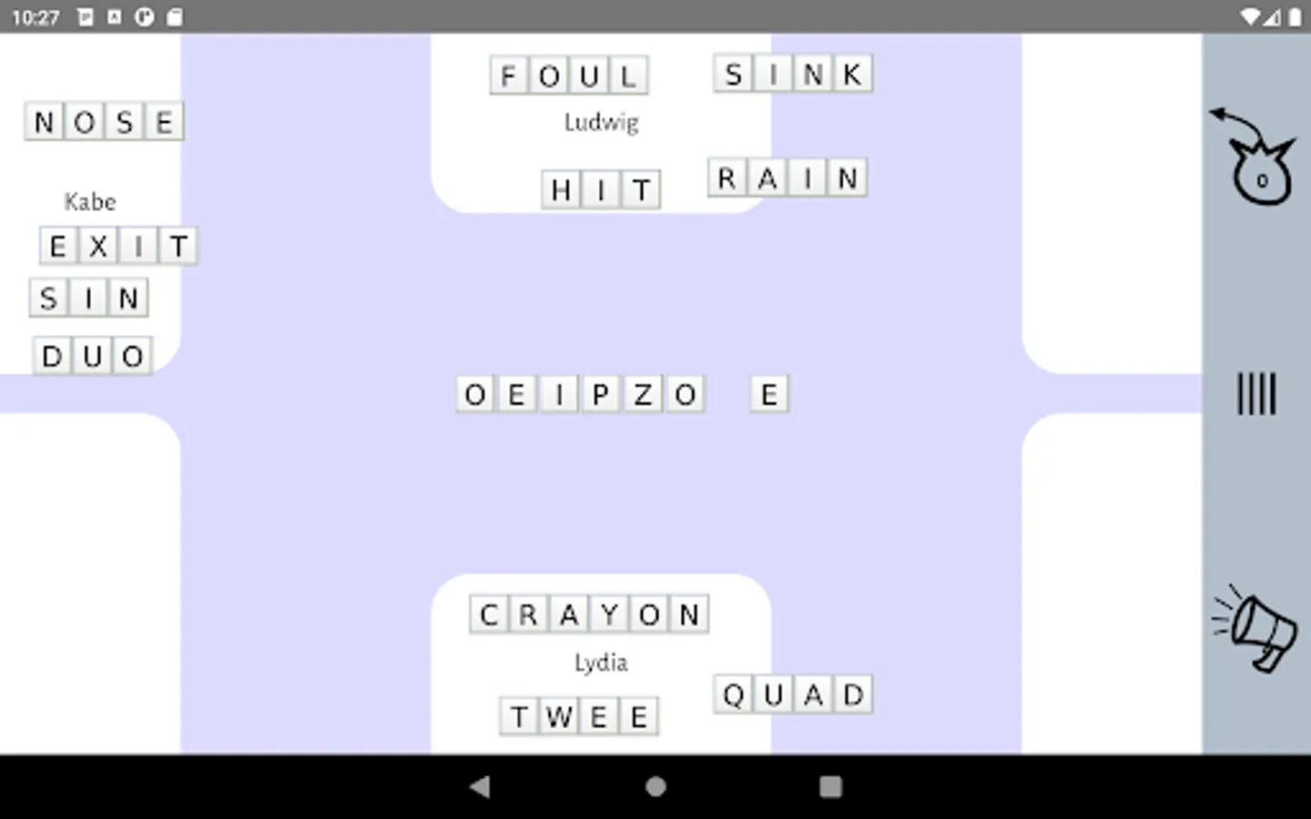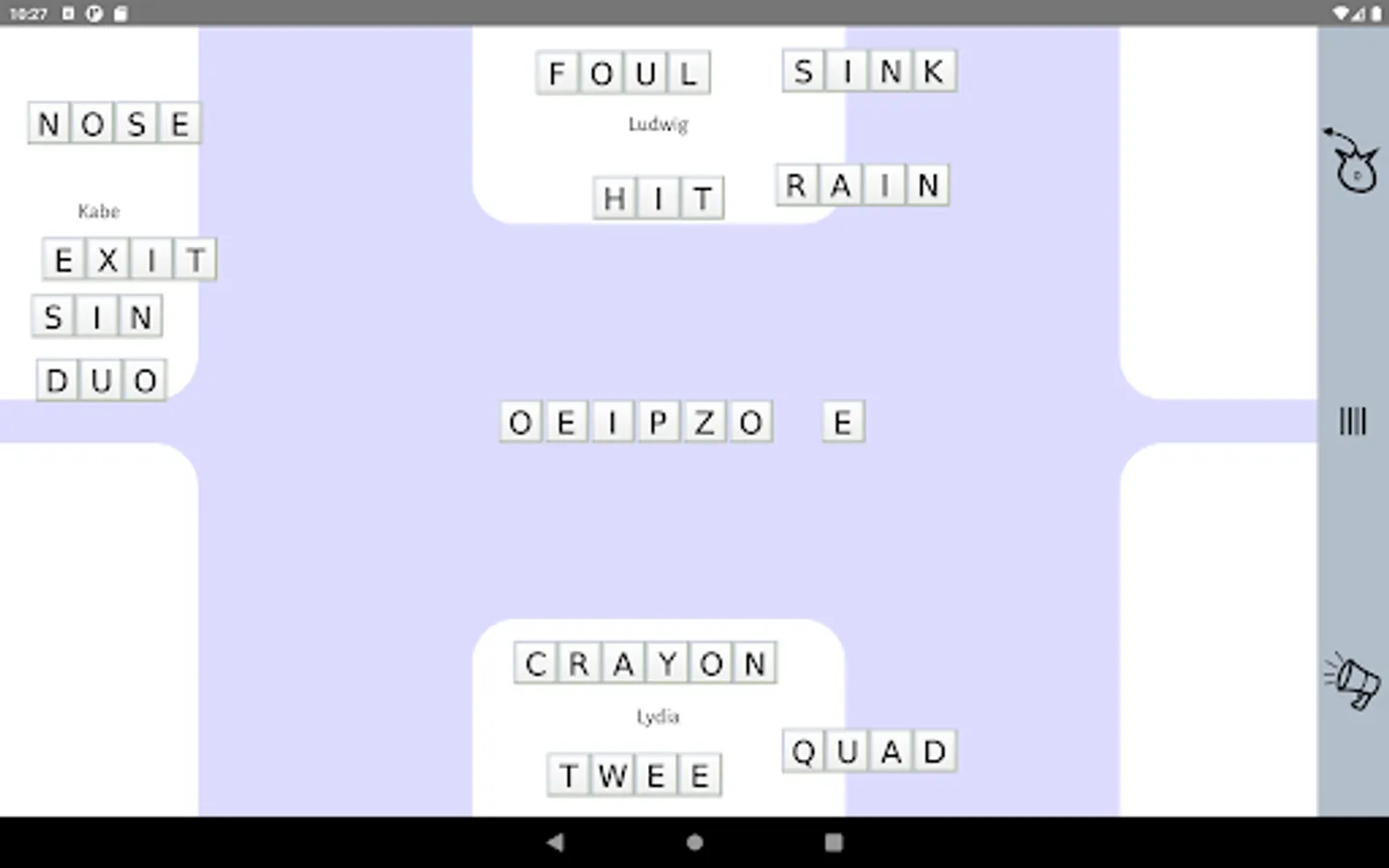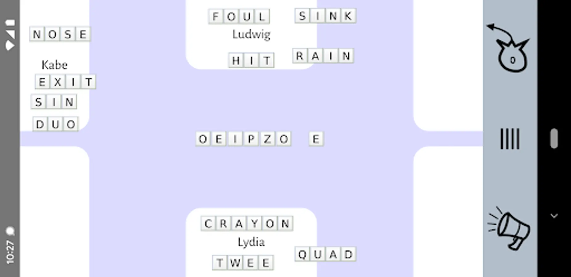 Each player adds a letter from the bag to the centre of the table on their turn. When any player sees a word in the jumble of letters they can take it. You can also steal a word from another player if you add another letter and rearrange their word to make an anagram. Can you spot anagrams faster than your friends?