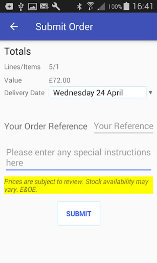 Once the App is initialised, you do not need to have an Internet Connection to compile your order or search for and add products. Obviously, an Internet Connection is required to actually submit your order.