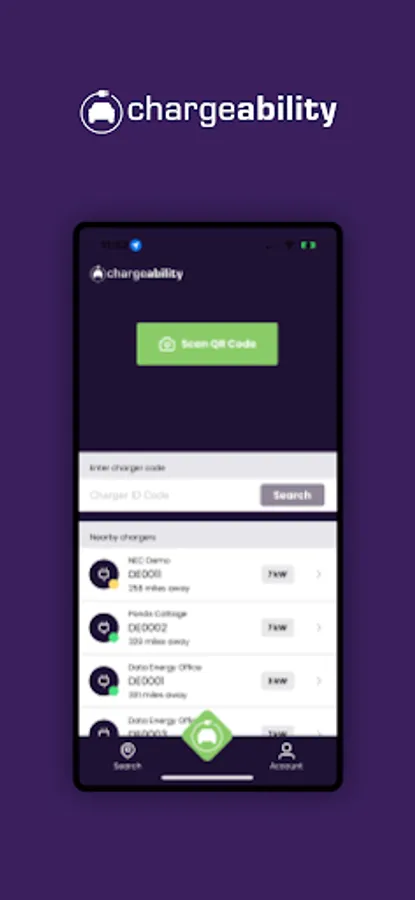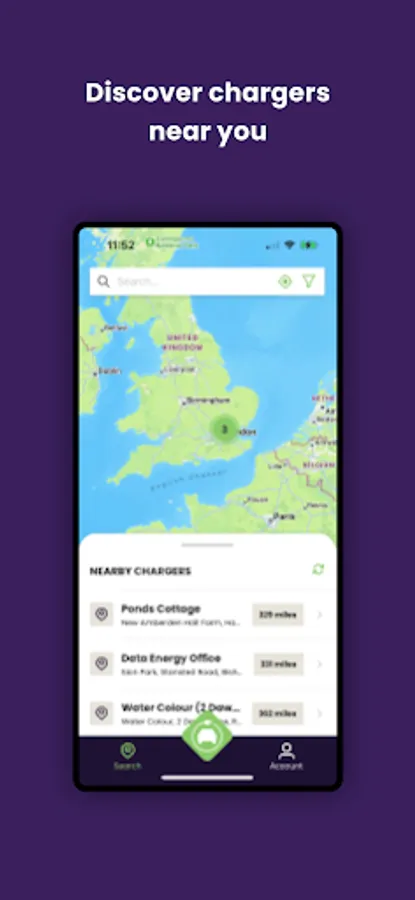 - Identify nearby chargers via charger list or a map view