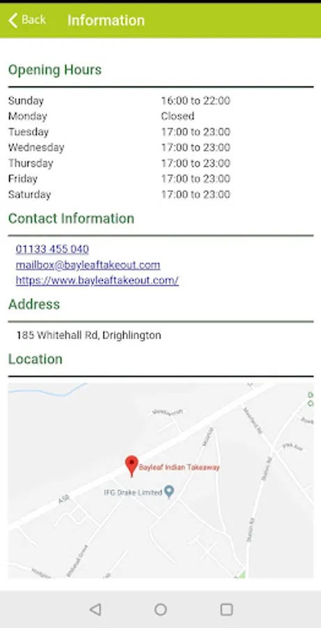 We work on you click we bring basis simply browse the menu of Bay Leaf Takeout who will be happy to cook for you and deliver to your door, so go on treat yourself you deserve it! Only the freshest and finest ingredients are used and are carefully prepared, cooked and presented to satisfy our valued customers. Then after you have eaten, we would love to hear what you think of our food and service by leaving feedback on the site.