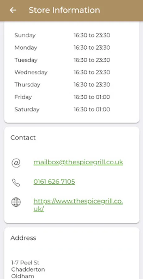 We work on you click we bring basis simply browse the menu of The Spice Grill who will be happy to cook for you and deliver to your door, so go on treat yourself you deserve it! Only the freshest and finest ingredients are used and are carefully prepared, cooked and presented to satisfy our valued customers. Then after you have eaten, we would love to hear what you think of our food and service by leaving feedback on the site.