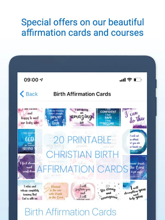 A 50% discount code for our Printable Birth Affirmation Cards.
