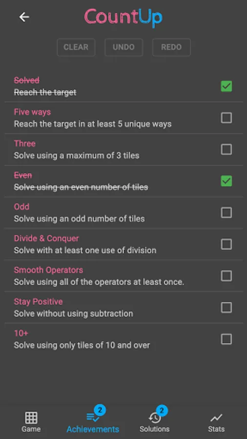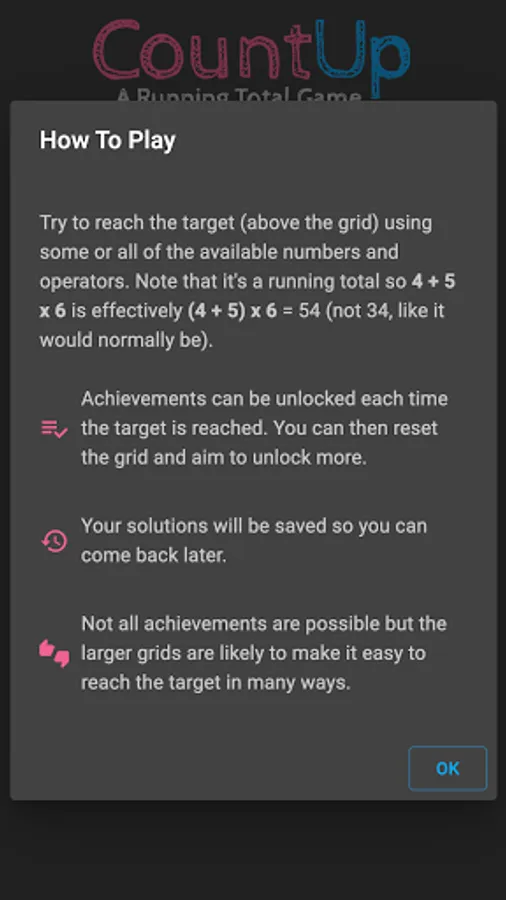 Achievements can be unlocked each time the target is reached. You can then reset the grid and aim to unlock more.
