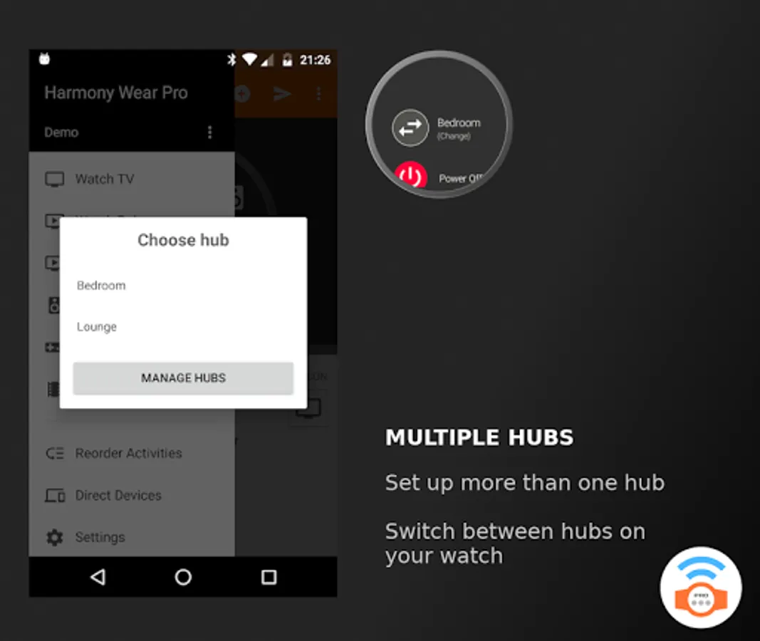 Harmony Wear Pro lets you control your Harmony Hub from your Android Watch.