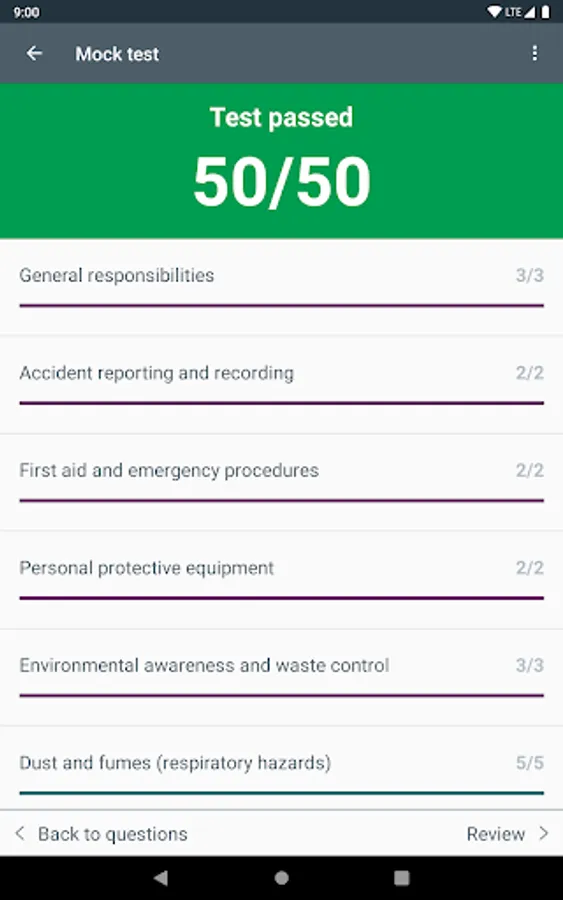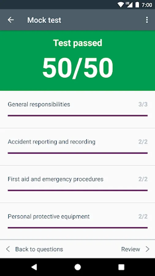• Review your progress with a comprehensive breakdown of scores – look at individual questions to see which answers are correct, watch as your scores improve over time with practice