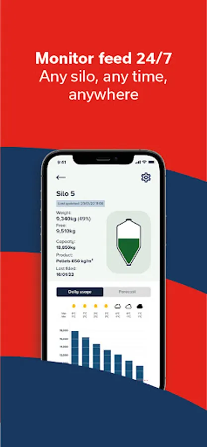 - Receive alerts when your silo is low, very low, empty and overfilled
