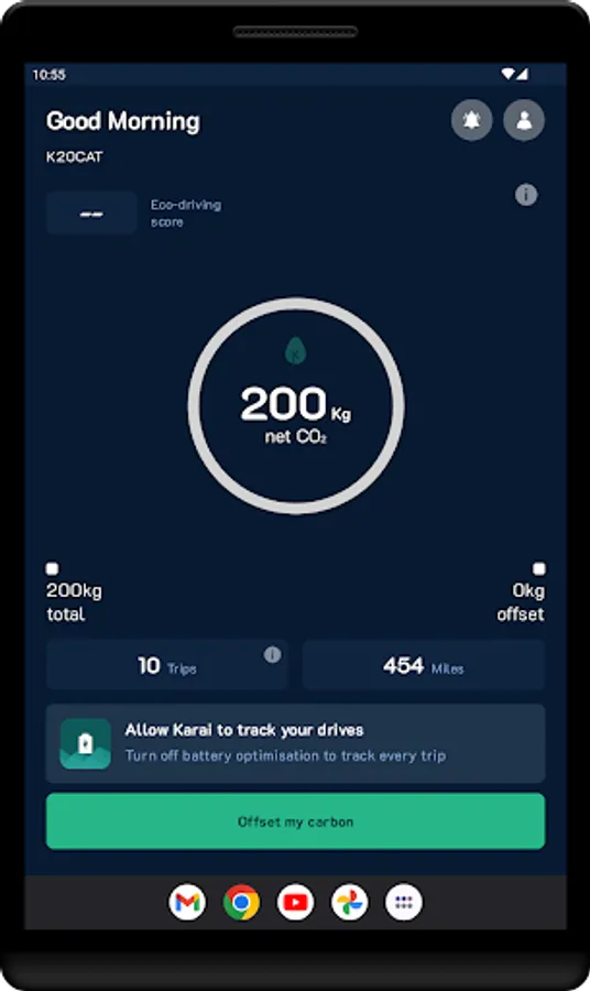Karai is your new eco-driving companion that calculates your carbon footprint every time you drive. Karai gives you an eco-score to help you to drive more sensitively and gives you the ability to offset your carbon footprint. Keep Karai with you on every journey to create a cleaner and more sustainable environment.