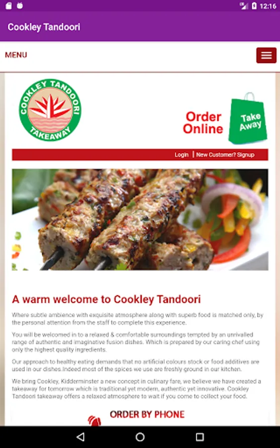 We bring Cookley, Kidderminster a new concept in culinary fare, we believe we have created a takeaway for tomorrow which is traditional yet modern, authentic yet innovative. Cookley Tandoori takeaway offers a relaxed atmosphere to wait if you come to collect your food.