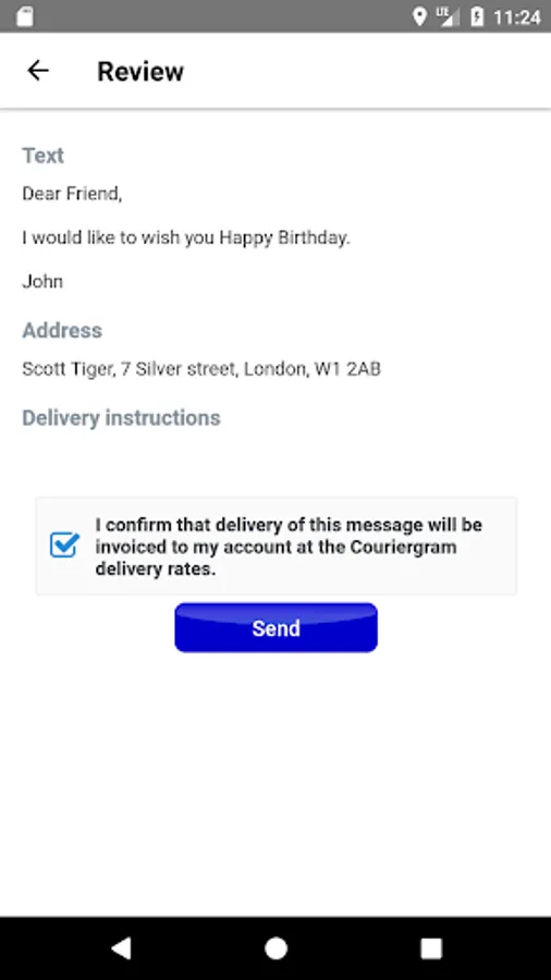 The Couriergram App allows you to send messages to any address in the UK within 2 hours. Compose, store and send your Couriergram messages. Requires a Couriergram account, which is free to open, to use the Couriergram message delivery system.
