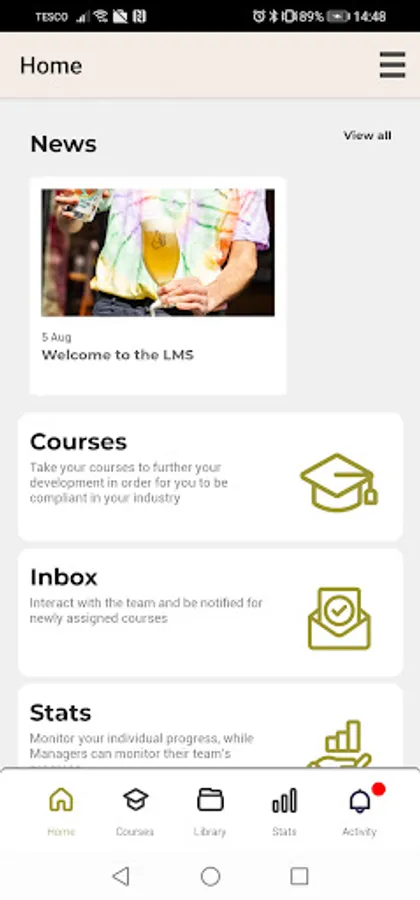 Complete courses, keep updated with company news and view resources in the library with the Common & Co People app