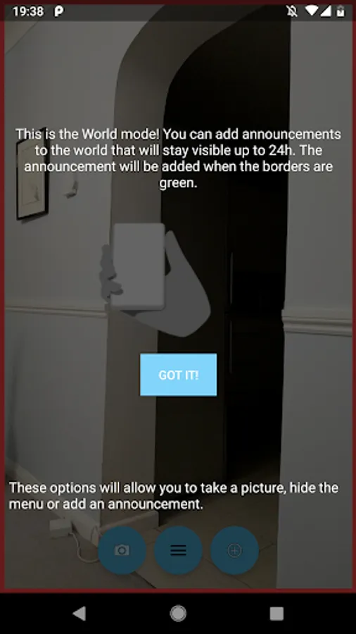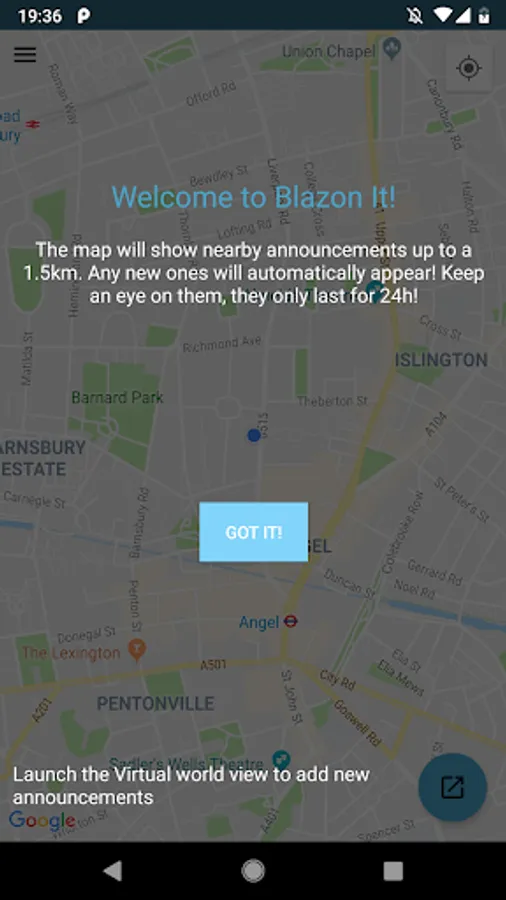 The world is your audience! With Blazon It! you can place short time ads or messages around you only visible in the augmented reality world for up to 24 hours. The map view will help you locate them and check what they are about and the Virtual World view will help you visualise other people's messages or place yours. If you have an ARCore mobile device, don't miss this app!