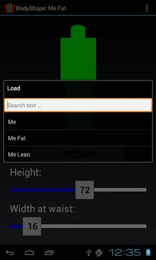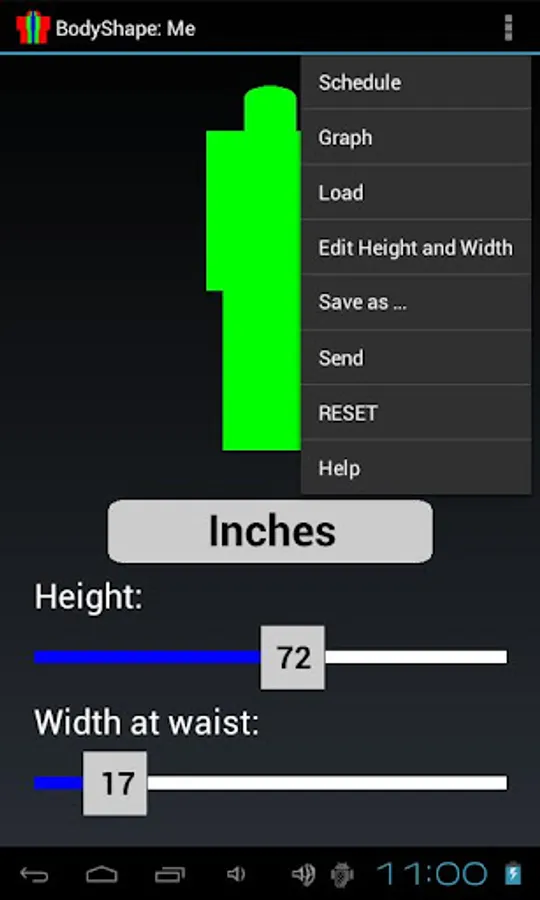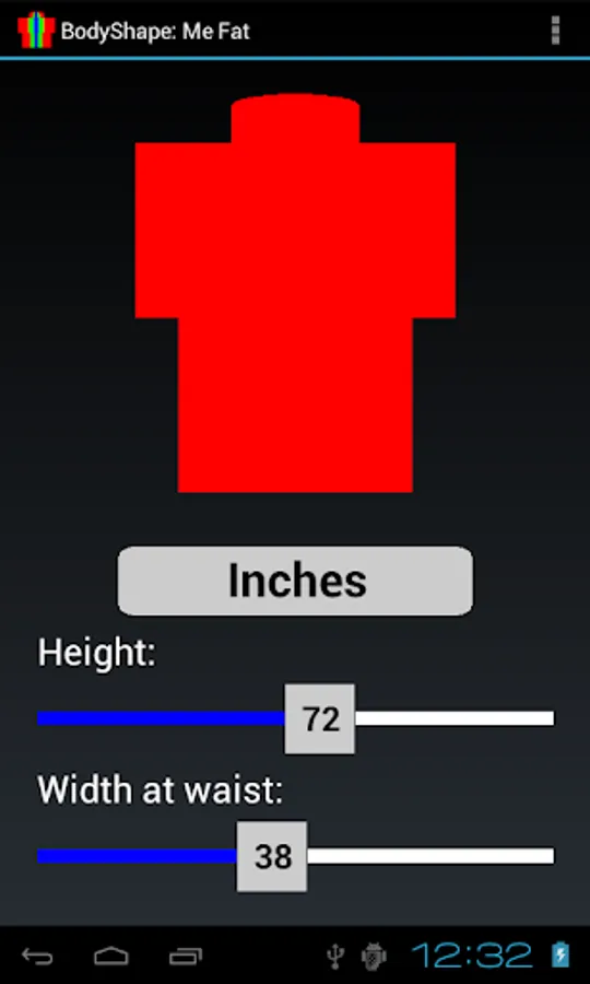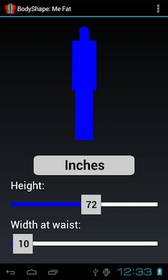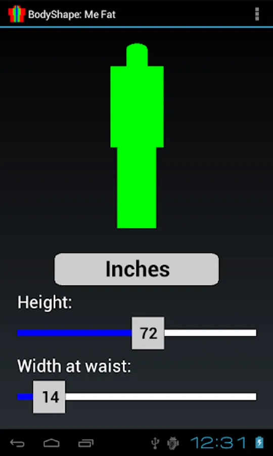 BodyShape shows graphically the body contour shape, given the height and width at waist, and shows instantly by color when the width at waist exceeds the minimum or maximum limits for the given height (too fat or too lean).