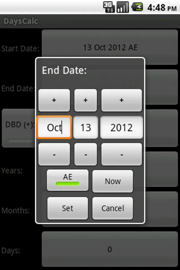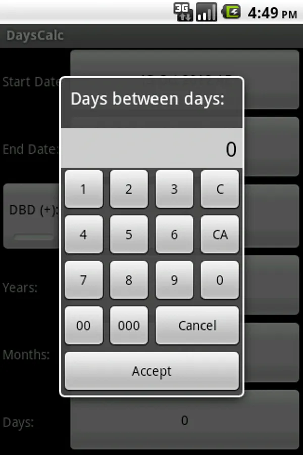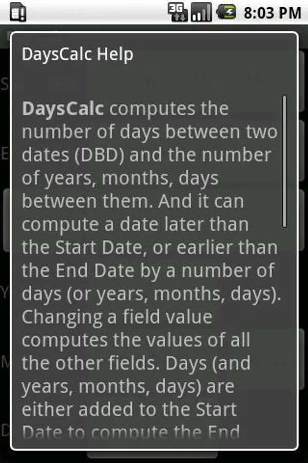 DaysCalc calculates the number of days, and Years:Months:Days between two dates, or an earlier or later date from a given date by the number of days, or Years:Months:Days.