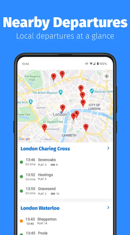 Searching for your train should be as simple as possible. That's why you can set favourites, search by nearby stations and more with Train Track.
