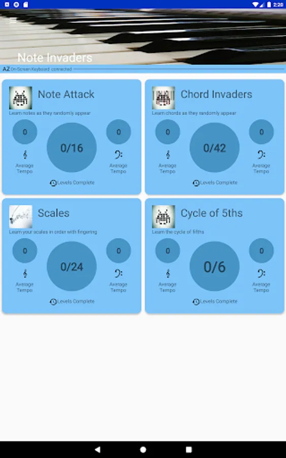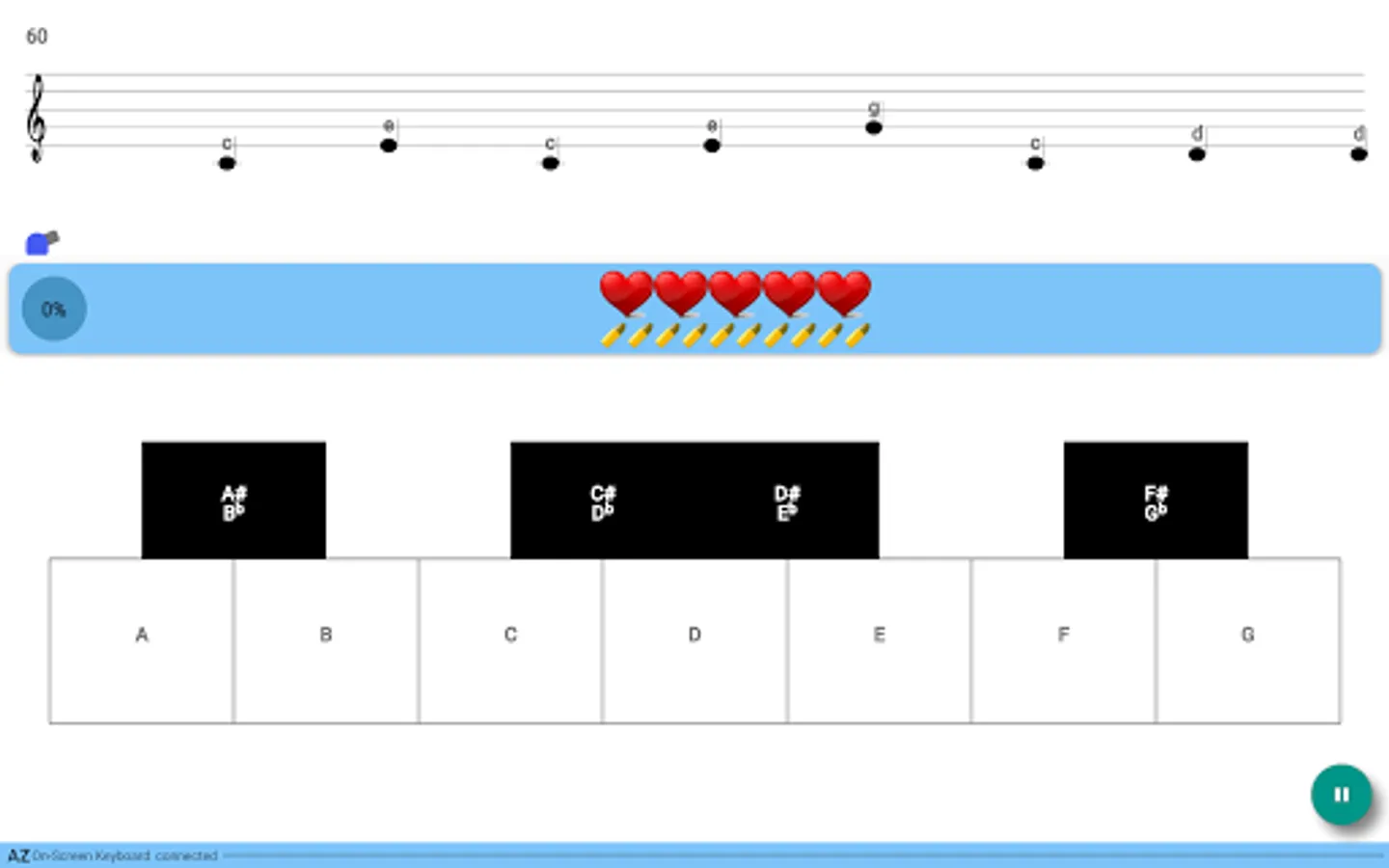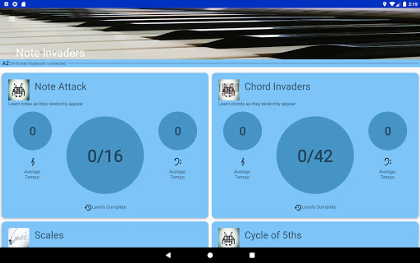 Connect to your instrument via USB or Bluetooth or use the on-screen keyboard to shoot down the notes, chords, scales and the Cycle of Fifths. In shooting notes as they appear in both Bass and Treble clef as you desire, you will learn the notes like never before.