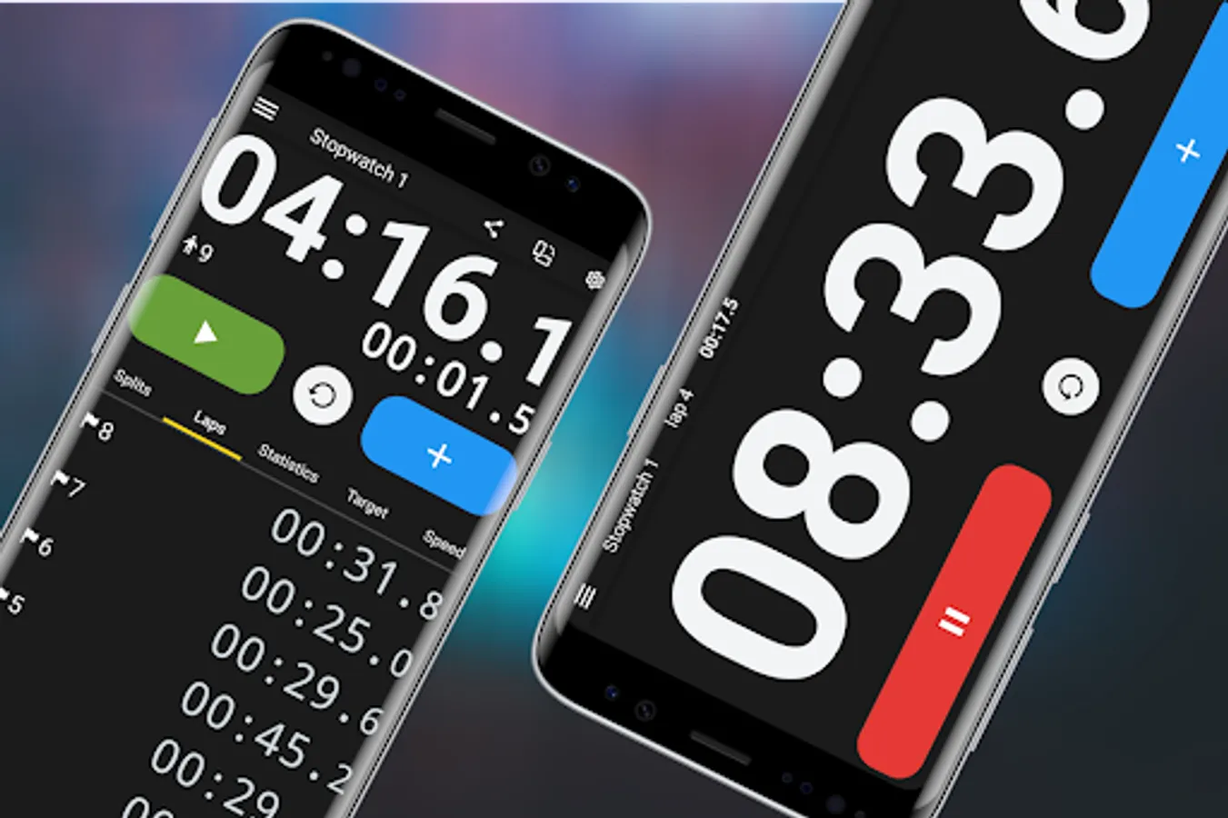 Stopwatch X: Sports Lap Timer is big & easy to use whilst having advanced features such as countdown to start, multiple timers, lap speed calculation, lap time targets with countdown, auto-scaling/adjustable text, side button operation and stopwatch statistics.