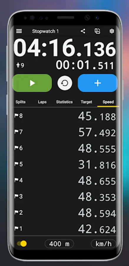 Stopwatch X: Sports Lap Timer has received praise from athletes, engineers, race coordinators and motorsport professionals for reliability, features and a big, clear, simple, easy to use user interface. It has a unique stopwatch feature of five separate recorded stopwatch views so that lap time, split time and statistics, speed and target lap time can be shown separately in large clear numbers. Speed calcualtion can be made made as metres per second (m/s), kilometres per hour (km/h), minutes per kilometre (min/km), minutes per mile (min/mi), miles per hour (mph), feet per second (f/s) and knot (kn). Distance can be set as metres (m), kilometres (km), miles (mi), feet (ft) or nautical mile (NM / NMI).